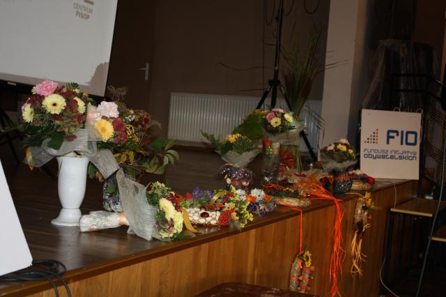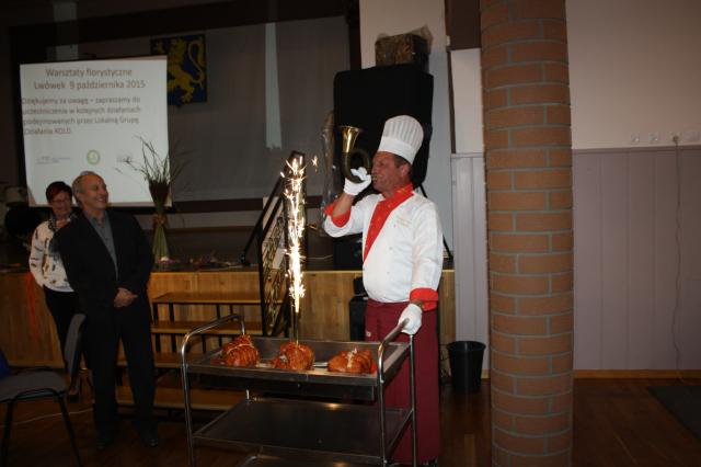 Zakończyliśmy realizacje projektu w ramach Wielkopolskiej Wiary dofinansowany z Fundacji Inicjatyw Obywatelskich za pośrednictwem PiSOP. 10 października w sali Miejsko-Gminnego Ośrodka Kultury w Lwówku spotkały się uczestniczki warsztatów prowadzonych w 7 miejscowościach na terenie gmin obszaru KOLD. Uczestniczki dokonały wystawy prac powarsztatowych, które wszyscy przybyli mogli obejrzeć. Podsumowania projektu dokonał członek Zarządu KOLD Ireneusz Witkowski wspomagany wyświetlanymi zdjęciami przez prowadzącego projekt Piotra Kłosa. W dyskusji wszyscy podkreślali trafność tematyki warsztatowej i proponowali o przeprowadzanie kolejnych tego typu zajęć. Swoimi pozytywnymi uwagami podzieliła się także prowadząca warsztaty Bernadeta Loba. Wiceprezes KOLD Jerzy Dziamski podziękował za przeprowadzenie warsztatów i całego projektu. Na podsumowaniu obecny był także wiceburmistrz Nowego Tomyśla Paweł Mordal. Na zakończenie spotkania uczestnicy wymieniali uwagi przy wspólnym posiłku przygotowanym przez Interbar z Grońska, który w specjalnej oprawie z sygnałami myśliwskimi serwował swoje dania warsztatowe.