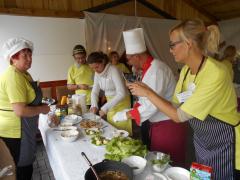 Przez trzy dni od 26 września, przebywała na obszarze LGD KOLD 15 osobowa grupa restauratorów, gastronomików z LAG Flaeming-Havel, realizując wspólnie z polskimi odpowiednikami projekt współpracy międzynarodowej. Wizyty w Restauracji Iral w Nowym Tomyślu, gospodarstwie ekologicznym Folwarku Wąsowo, Restauracji Lwowianka, Muzeum Wikliniarstwa w Nowym Tomyślu, Piramidzie w Paproci czy Gminnym Ośrodku Kultury w Kuślinie pozwoliły na poznanie naszych zasobów regionu i na tej bazie dyskutowano o problemach restauratorów. Goście uczestniczyli także w warsztatach gotowania dań regionalnych -poznańskiej pyzy ( uczyła kuchnia Restauracji Lwowianka) oraz polskich pierogów ( uczyły panie amatorki z Gminnego Ośrodka Kultury w Kuślinie. Głównym punktem seminarium był konkurs kulinarny, podczas którego polskie zespoły przygotowywały dania niemieckie i odwrotnie – wyniki były nadzwyczaj pozytywne. Ze strony LGD KOLD startowały Koło Gospodyń Wiejskich Chojniki z gm. Nowy Tomyśl, Stowarzyszenie Nojewiak z gminy Pniewy oraz Bar Słoneczko z gminy Miedzichowo. Na zakończenie konkursu koncert muzyczny w wykonaniu zespołu Contry Zenit z Nowego Tomyśla. Jedna z niemieckich uczestniczek seminarium przekazała dla Ośrodka Pomocy Społecznej w Lwówku wózek inwalidzki. Na zakończenie uczestnicy otrzymali certyfikaty ukończenia seminarium. Projekt prowadzili Ireneusz Witkowski i Piotr Kłos. Za rok rewizyta polskich gastronomików u niemieckich odpowiedników
