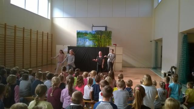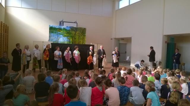 W czwartkowe przedpołudnie 28 września 2017r. grupa teatralna prowadzona pod okiem instruktora p. Krystyny Drozdowskiej-Szychowiak wyjechała z przedstawieniem kukiełkowym pt. „Pniewy w legendach” do Szkoły Podstawowej w Nojewie. Dzieci z zaciekawieniem słuchały i oglądały akcje w oknie teatralnym. W podziękowaniu młodzież szkolna zatańczyła dla Seniorów - aktorów