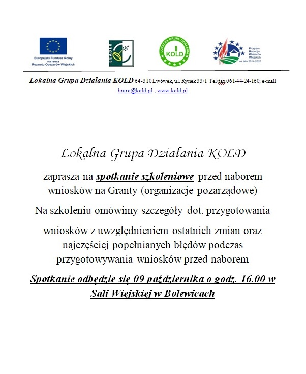 Europejski Fundusz Rolny na rzecz Rozwoju Obszarów Wiejskich: Europa inwestująca w obszary wiejskie". Instytucja Zarządzająca PROW 2014-2020 - Minister Rolnictwa i Rozwoju Wsi. Funkcjonowanie LGD współfinansowane jest ze środków Unii Europejskiej w ramach działania 19 Wsparcie dla rozwoju lokalnego w ramach inicjatywy LEADER, poddziałania 19.4 „Wsparcie na rzecz kosztów bieżących i aktywizacji” objętego Programem Rozwoju Obszarów Wiejskich na lata 2014-2020.